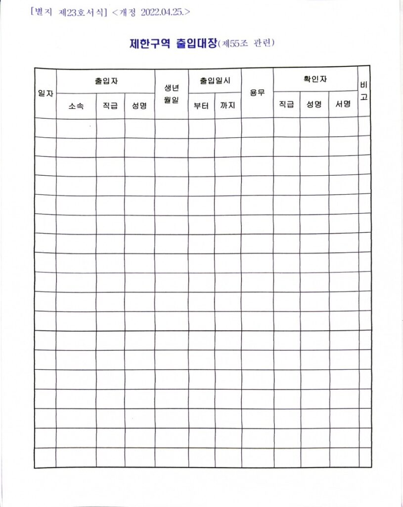 먼저, 철도운행안전관리자로 관할역 로컬운전실에 가면 위와 같은 제한구역 출입대장을 작성합니다.